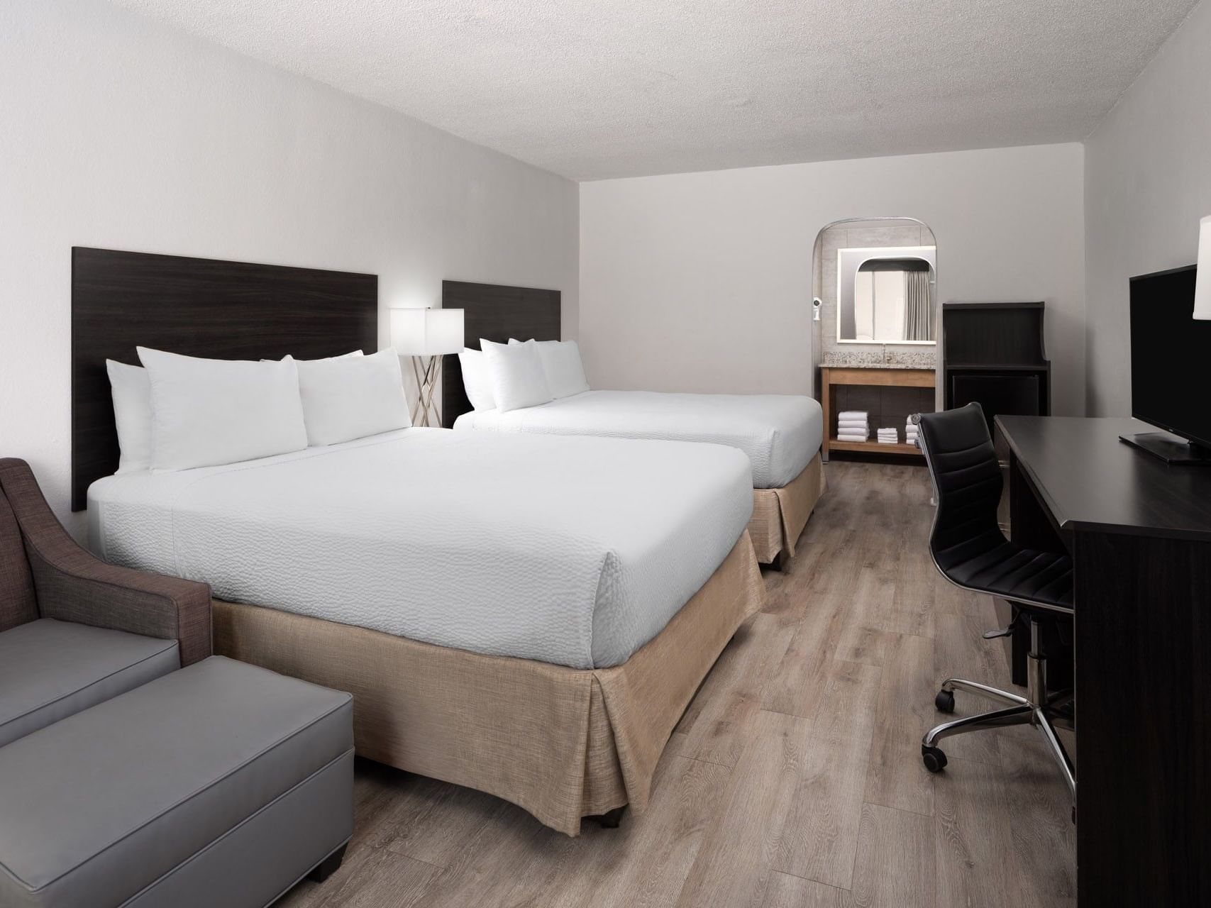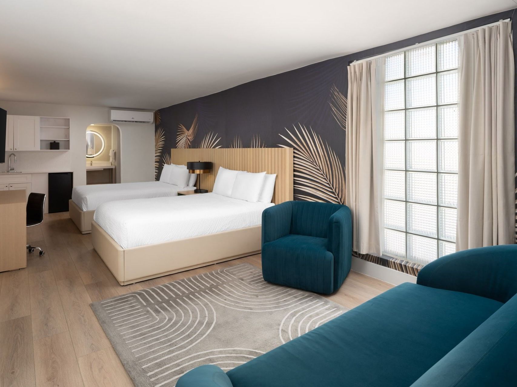 The best of space and style. This newly renovated suite features two Sealy plush Queen beds and a spacious living area with a sofa bed. With contemporary décor, upgraded bath amenities, and plenty of room to roam, it is your ideal tropical urban retreat.